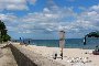<日置海水浴場 詳細> 妙見山の南側の100メートル程の浜が海水浴場になります。地元の子供達の格好の遊び場のようです。 北へも2キロ程にかけて浜が続いていますが、北の方は内陸に農地が広がり、浜沿いに保養所、別荘地があり特に誰が泳いでも釣りをしても構わないと思いますが指定海水浴場ではないようです。